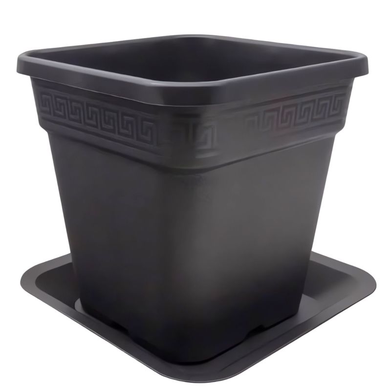 Blumentopf Untersetzer Schwarz 33,5x33,5 cm - Eckiger Hartkunststoff Untersetzer für 25L Töpfe, nachhaltig & robust